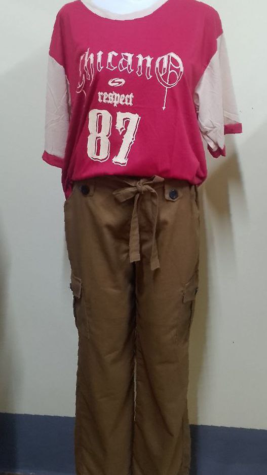 Casual street-style set featuring a loose graphic tee and high-waist cargo pants with tie-belt detail. Comfortable, relaxed fit — perfect for everyday cool and effortless style.
